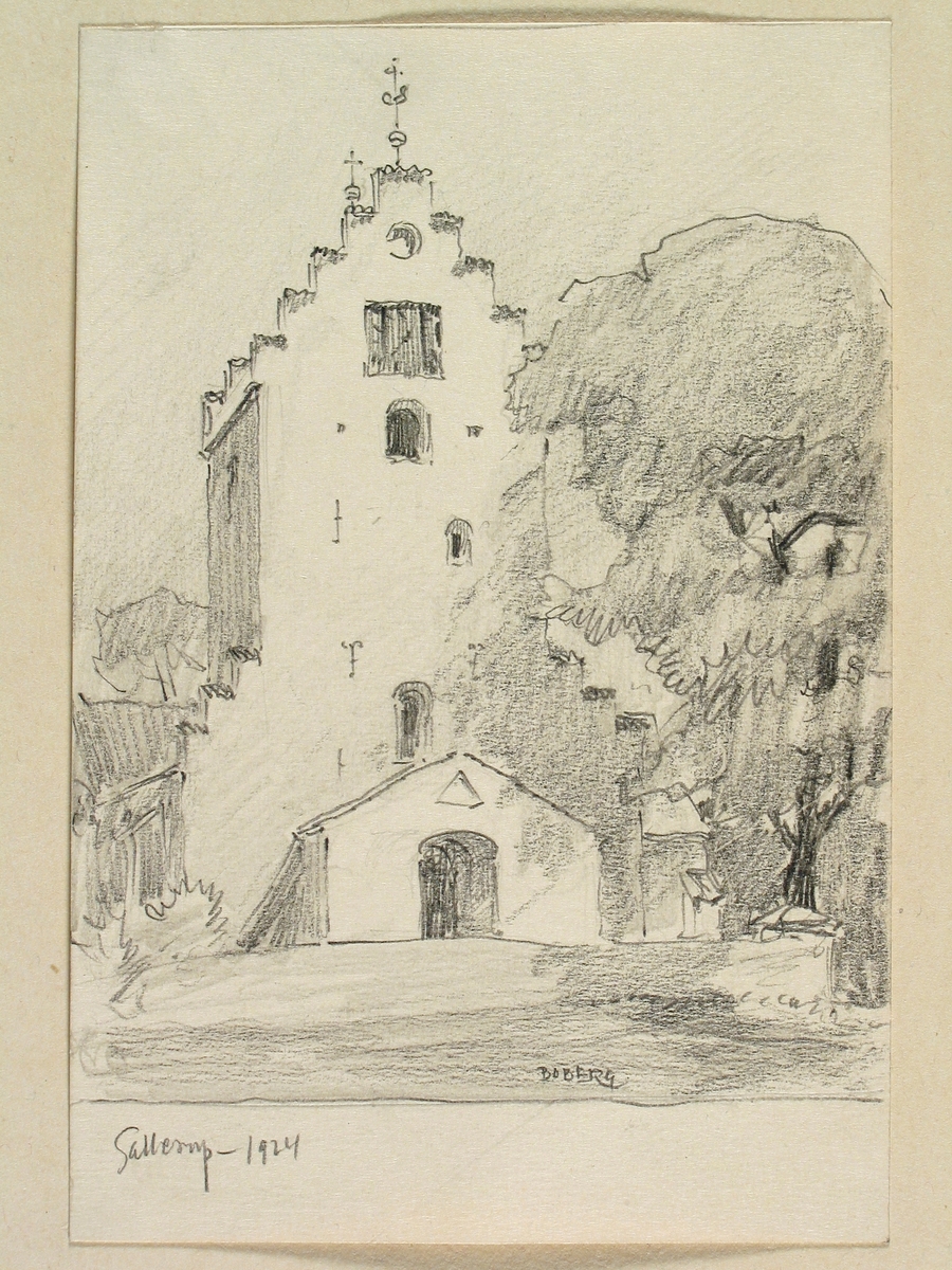 Teckning av Ferdinand Boberg. Skåne , Oxie hd., Sallerups kyrka