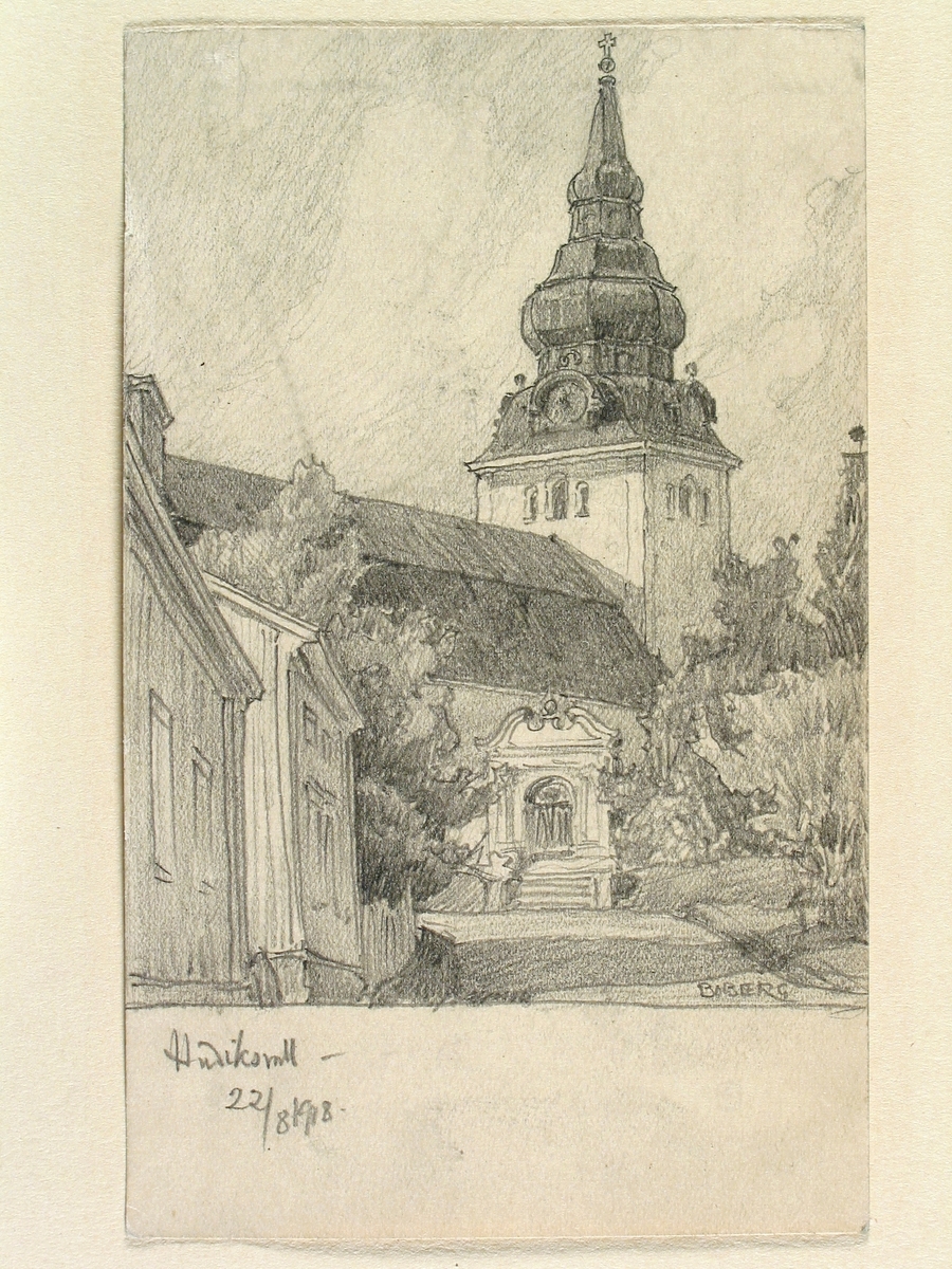 Teckning av Ferdinand Boberg. Hälsingland, Hudiksvalls kyrka