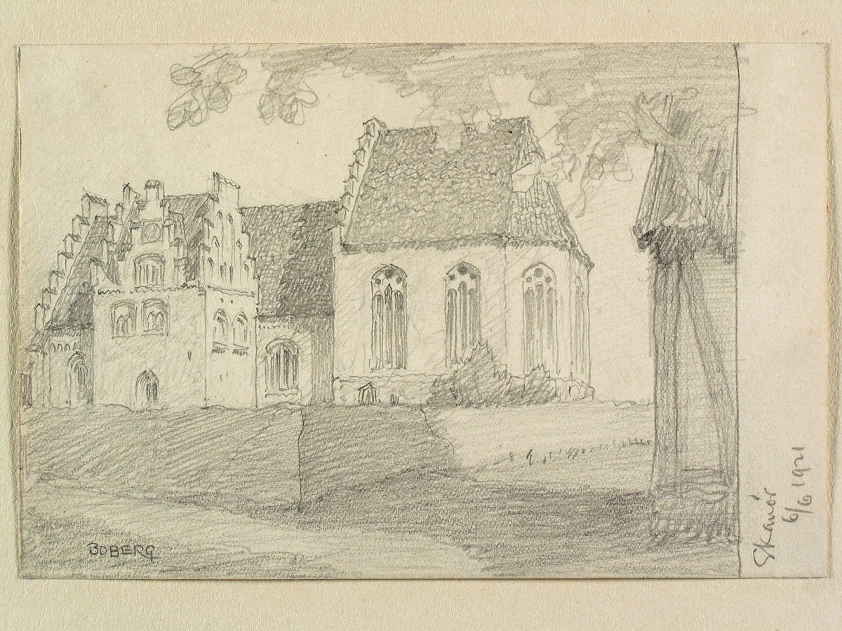 Teckning av Ferdinand Boberg. Skanör, Kyrkan