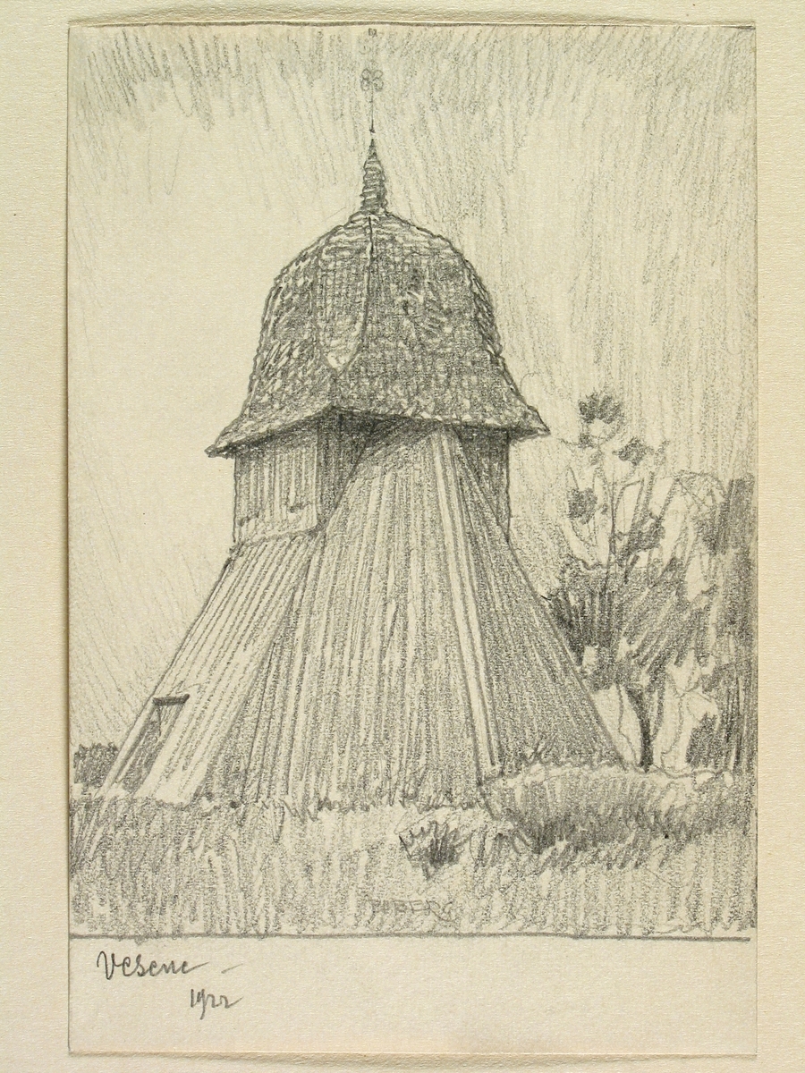 Teckning av Ferdinand Boberg. Västergötland, Gäsene hd., Vesene kyrka, Stapeln
