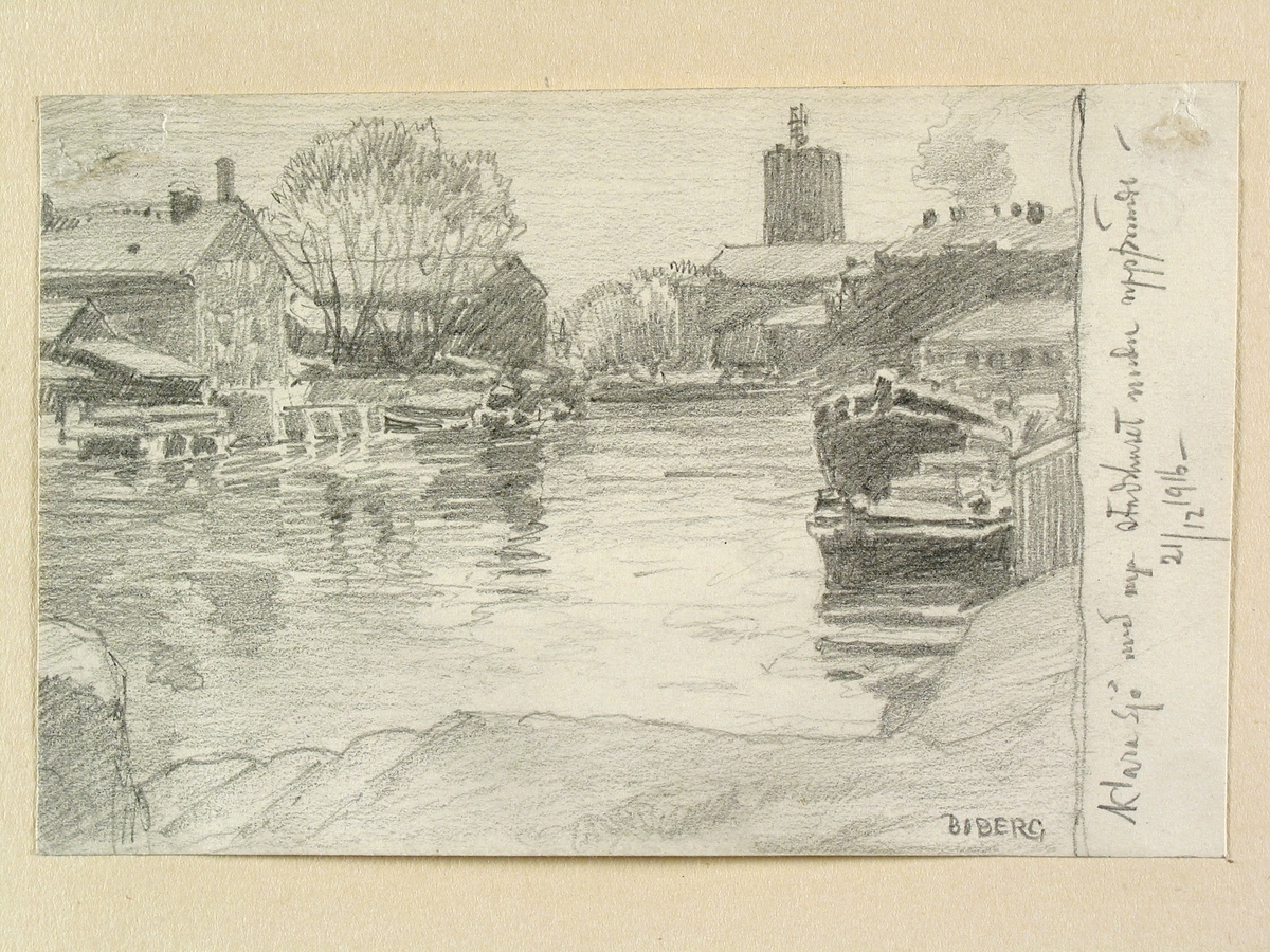 Teckning av Ferdinand Boberg. Stockholm, Klara sjö