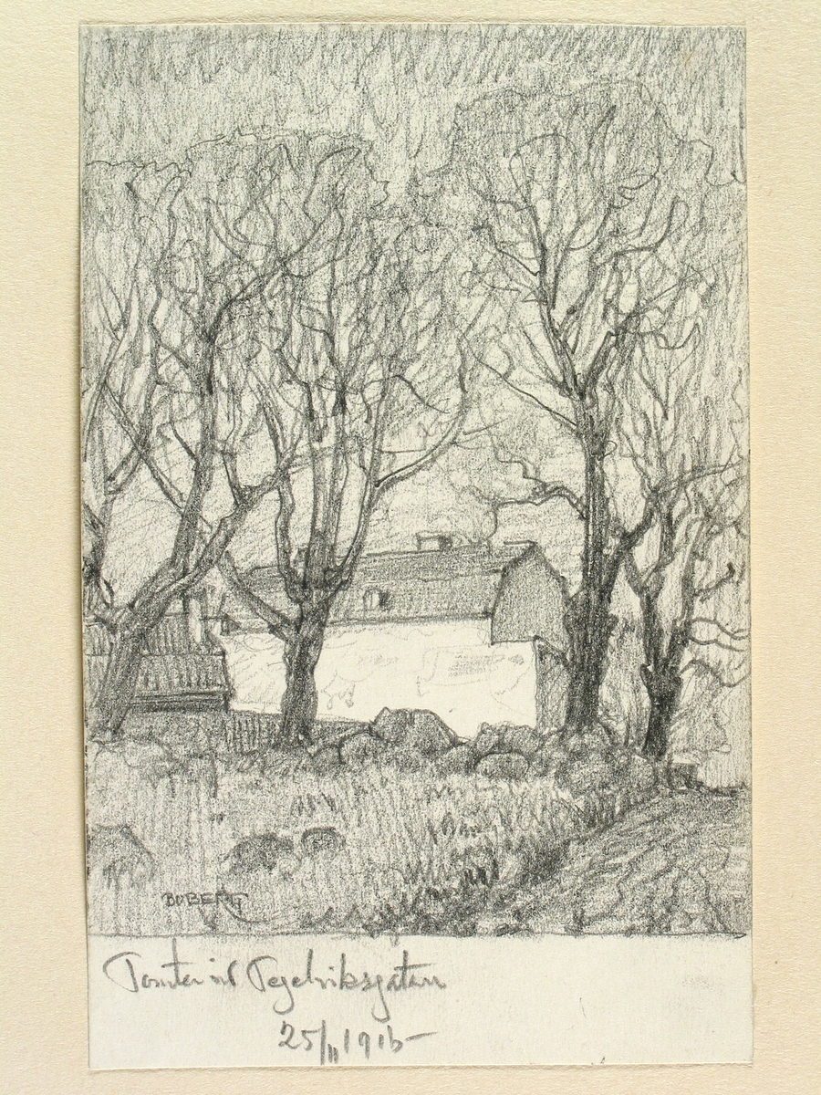"Tomter vid Tegelviksgatan , 25/11 1916".Teckning av Ferdinand Boberg.