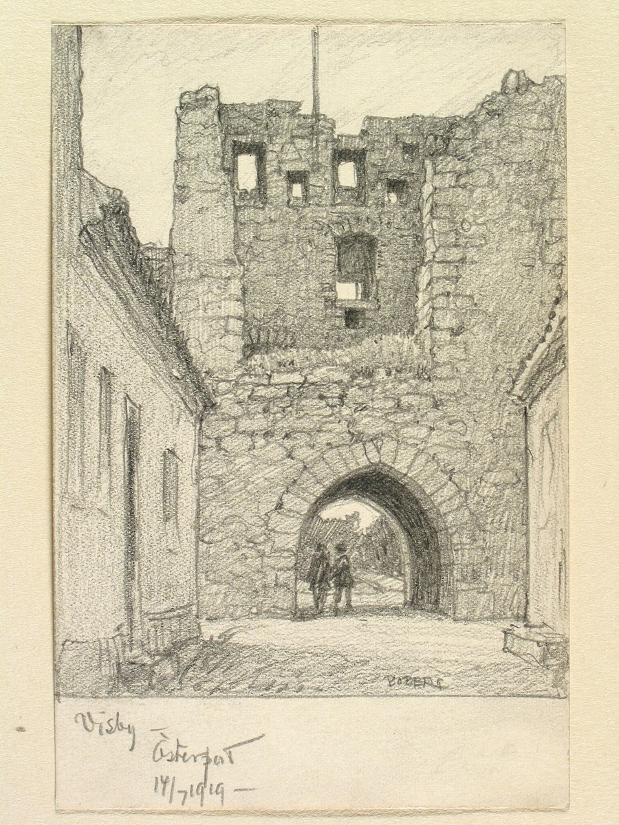Teckning av Ferdinand Boberg. Visby, Österport.