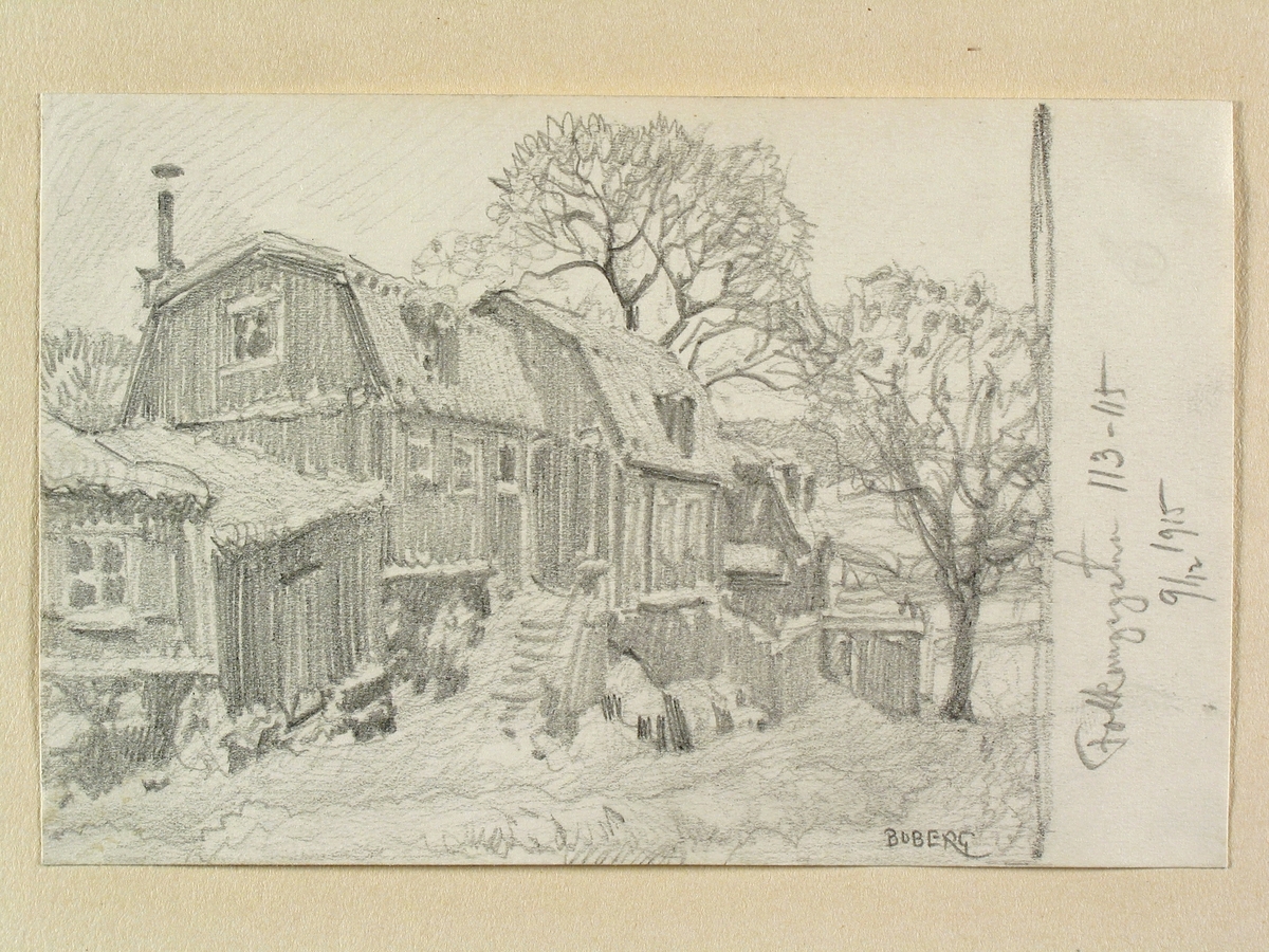 Teckning av Ferdinand Boberg. Stockholm, Söder, Kv. Ersta 17, Folkungagat. 113-115