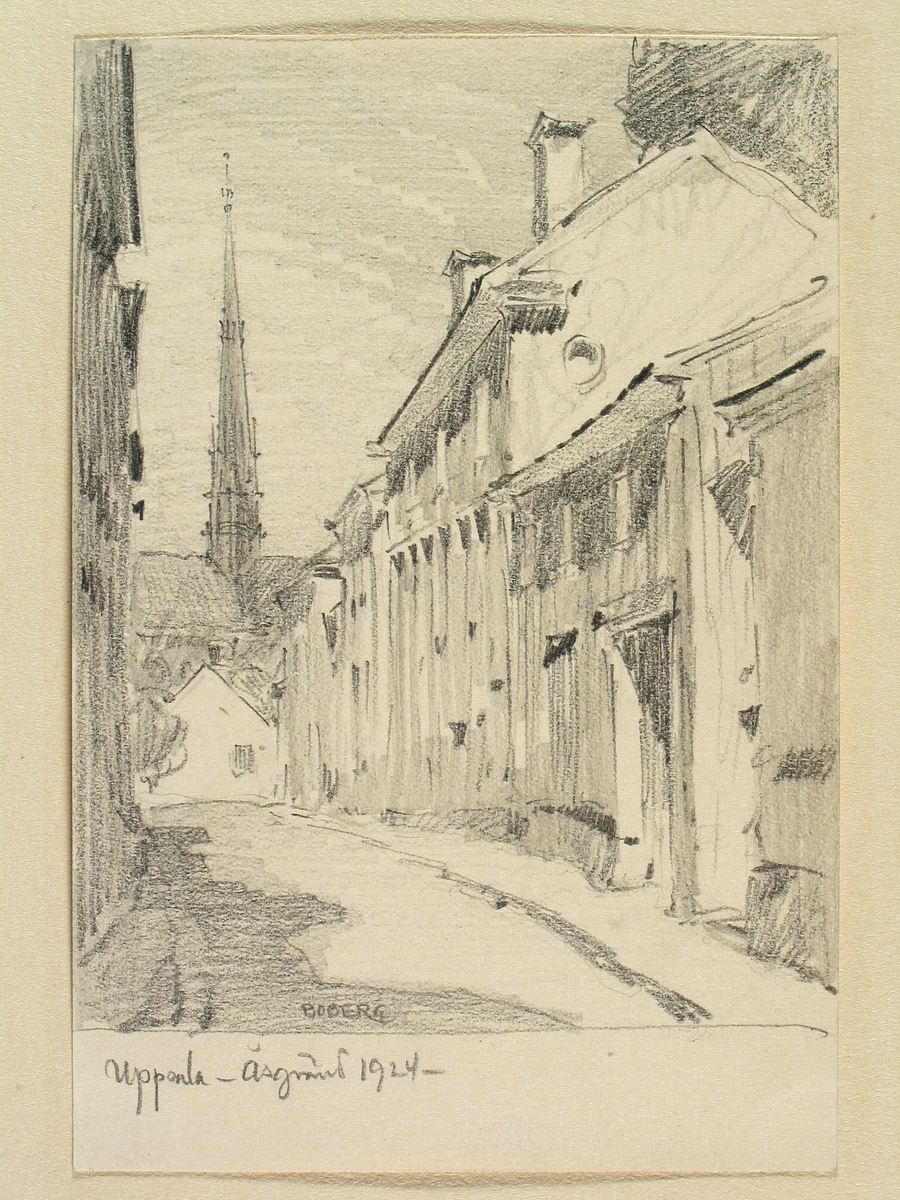 Teckning av Ferdinand Boberg. Uppsala, Åsgränd