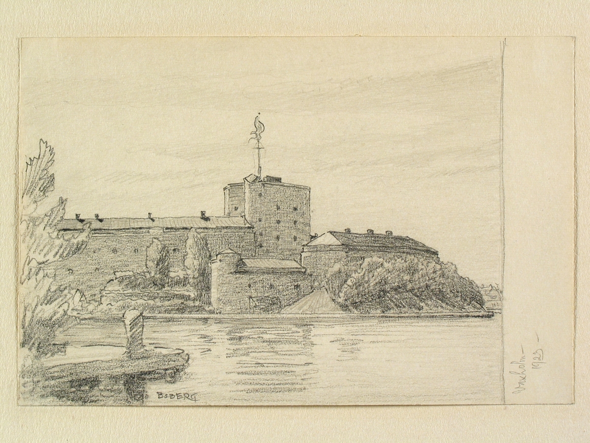 Teckning av Ferdinand Boberg. Vaxholm, Fästningen