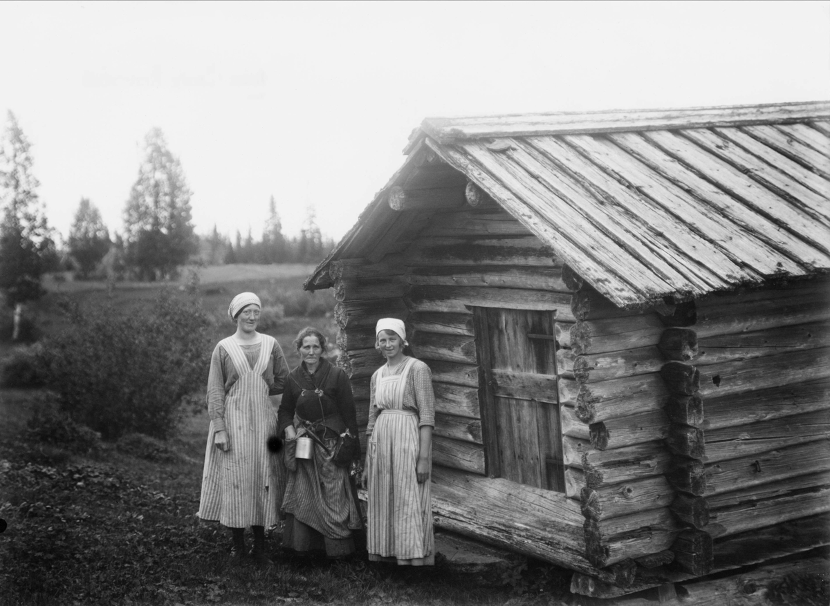 Från Södra Fenningbergets fäbod. Fäbodskullor: Gattare enligt äldre neg. kuvert. Berta Mojanis, Maja - Brita Larsson, Olmångs - Märta