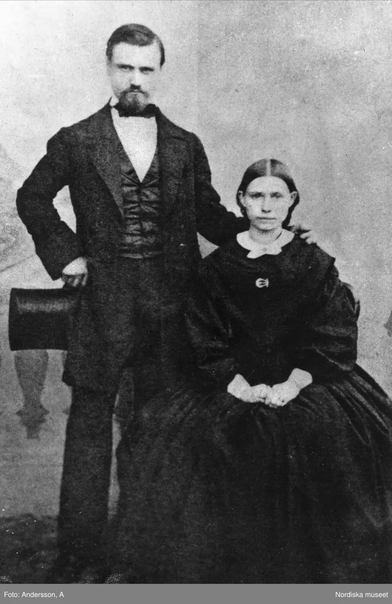Bröllop, brudpar. Liefabrikör Per August Nordahl och hans fru Carolina (f. Malmberg). Västra Boda, Dalarna.