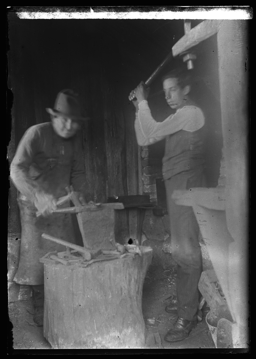 Två män arbetar i en smedja.
