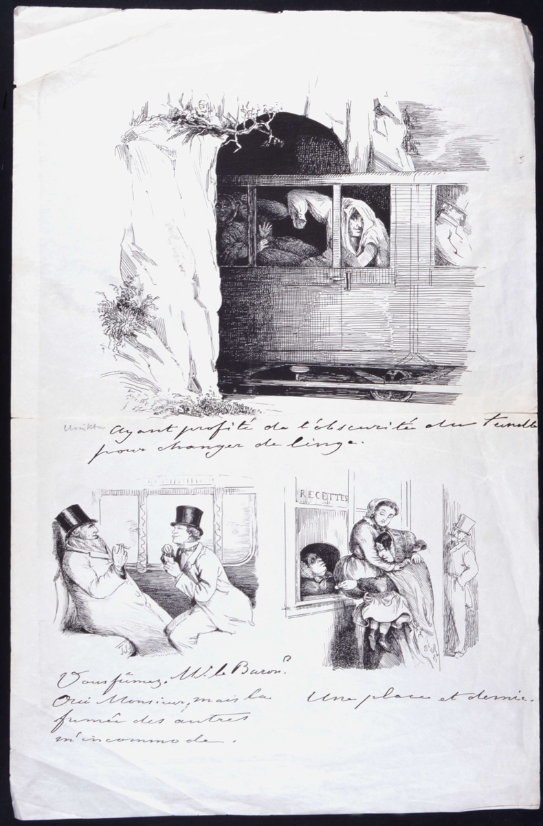 Tre scener från järnväg, och tågresa. Tusch av Fritz von Dardel
