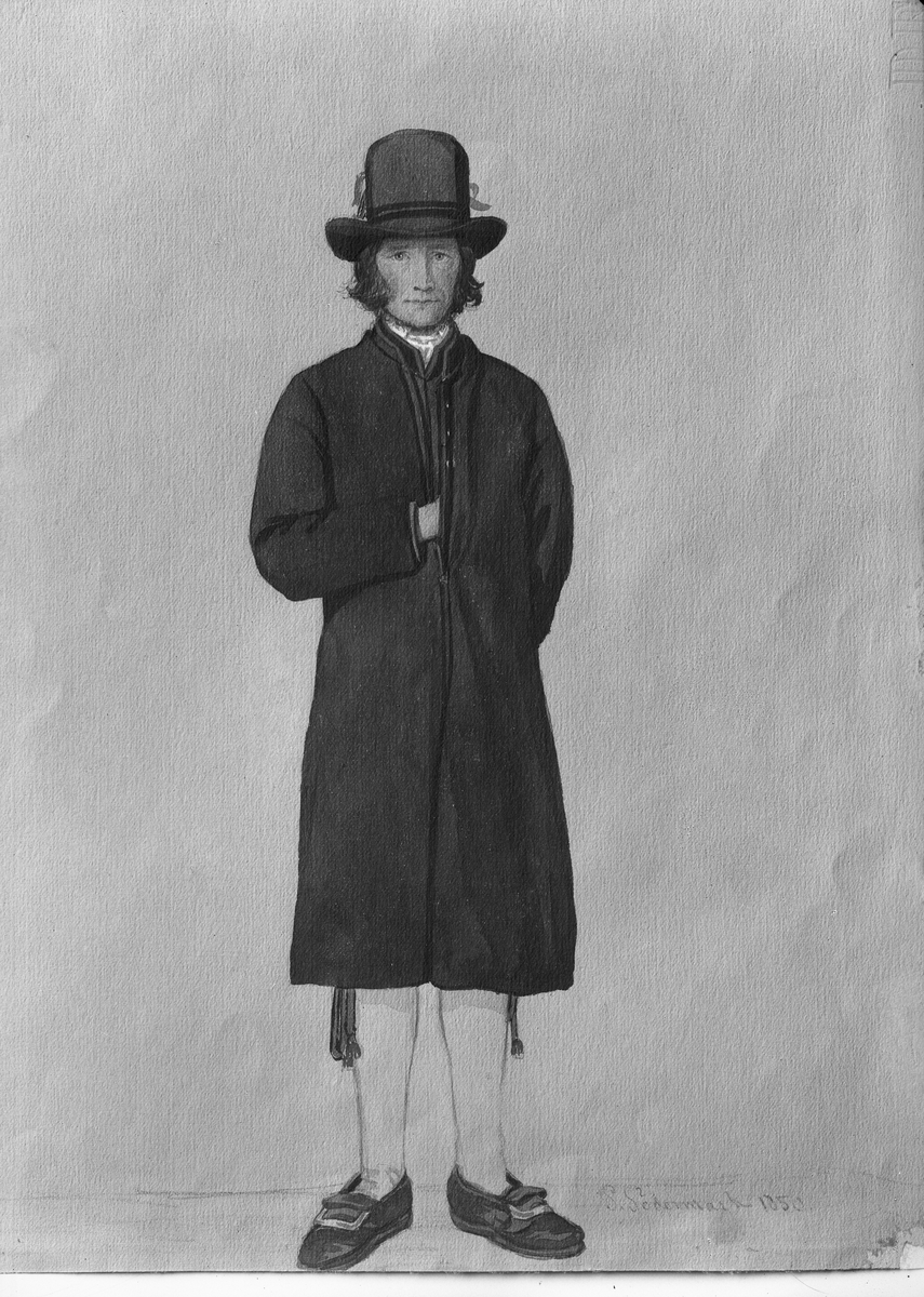 Teckning av P Södermark 1850 föreställande Kes Jerker i Limaby i Leksand
