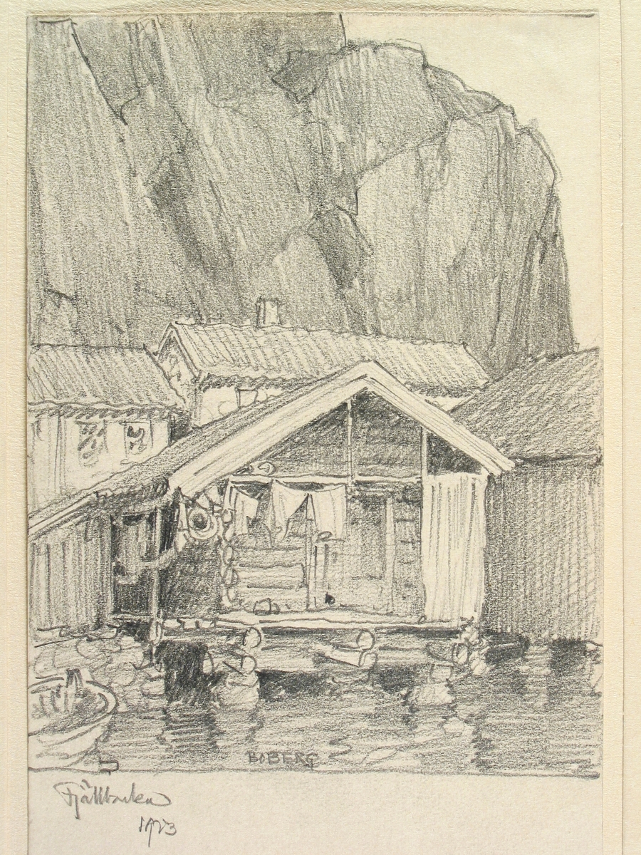 Bohuslän, Fjällbacka. Bodar. Teckning av Ferdinand Boberg