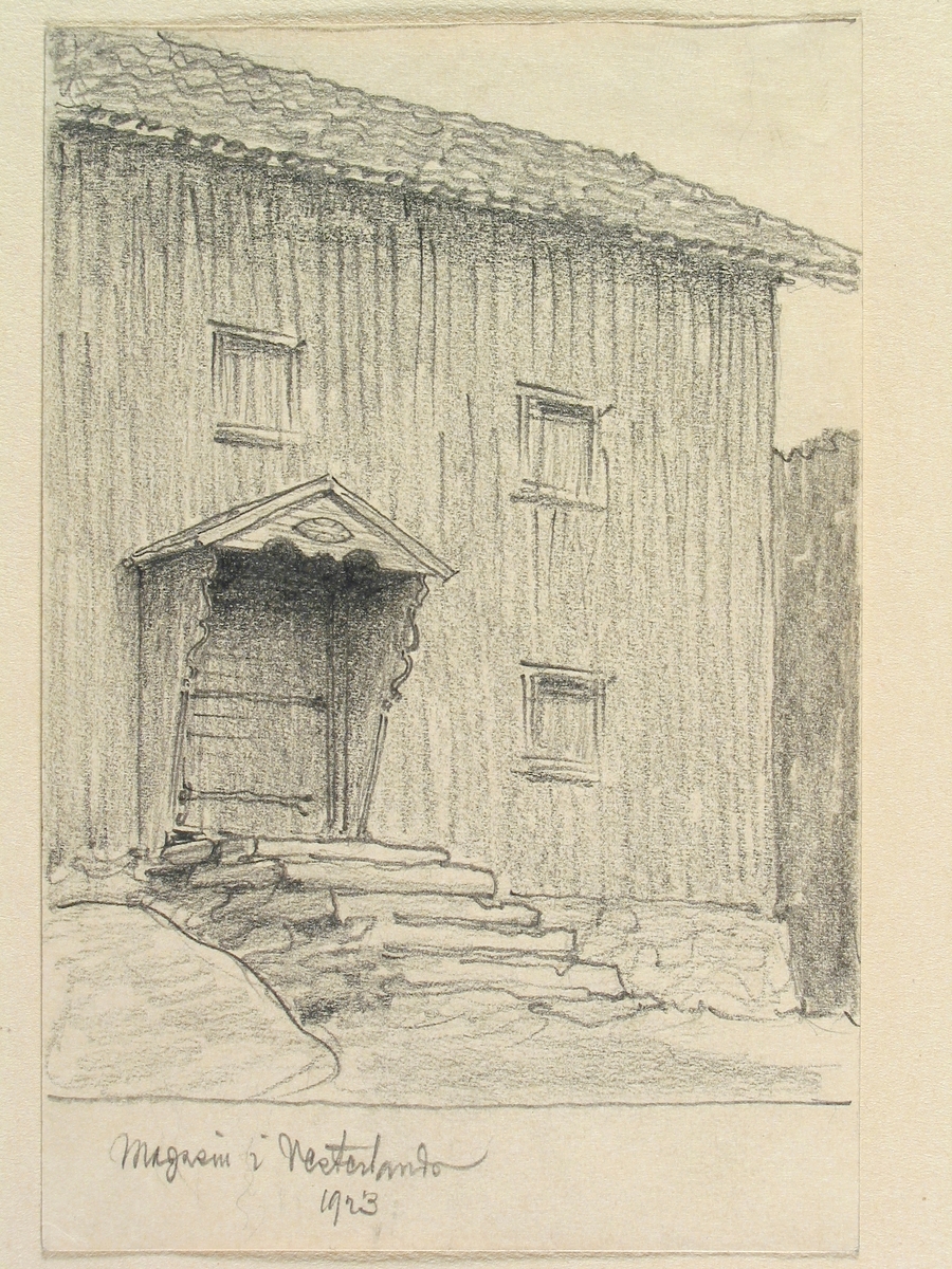Bohuslän, Västerlanda. Magasin. Teckning av Ferdinand Boberg