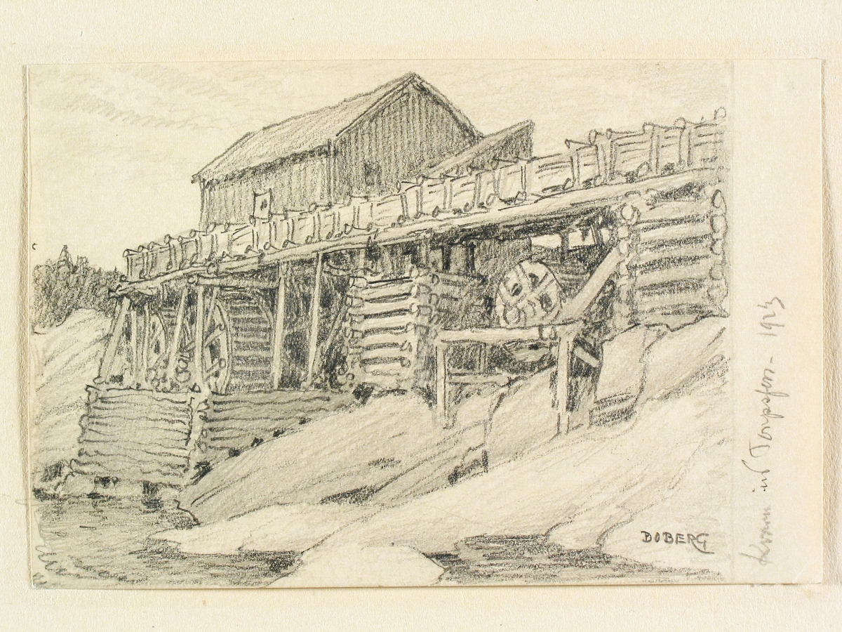 Dalsland, Torpsfors. Kvarn. Teckning av Ferdinand Boberg