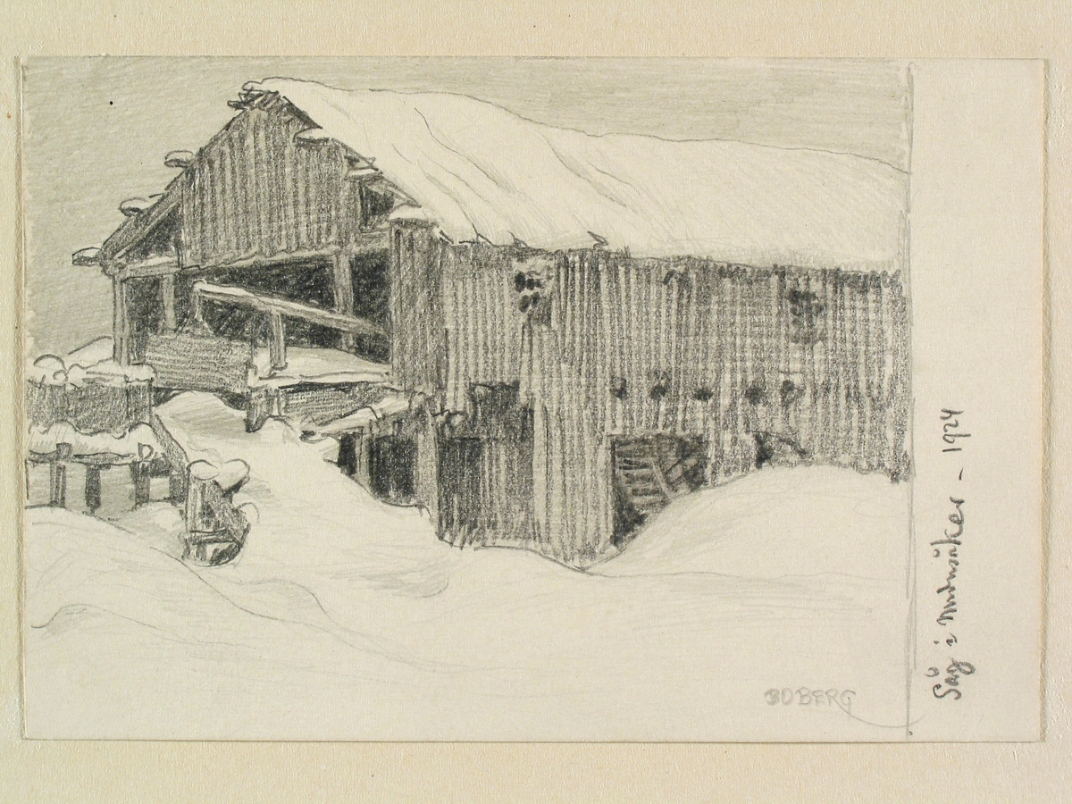 Jämtland, Undersåkers sn. Såg i Undersåker. Teckning av Ferdinand Boberg