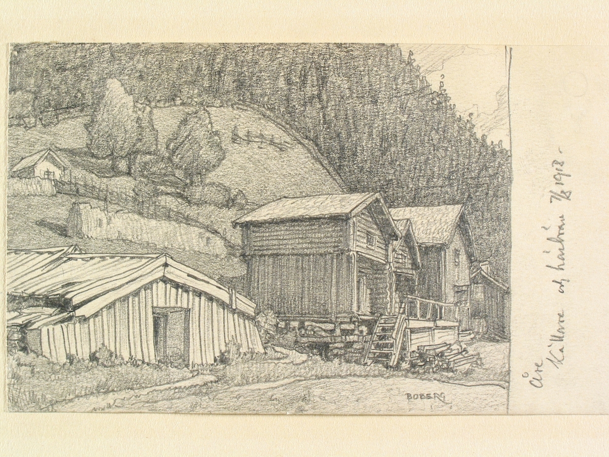 Jämtland, Åre. Källare och härbren. Teckning av Ferdinand Boberg