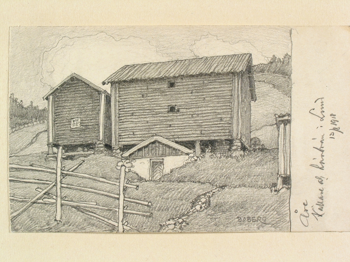 Jämtland, Åre sn., Lund. Källare och härbren. Teckning av Ferdinand Boberg