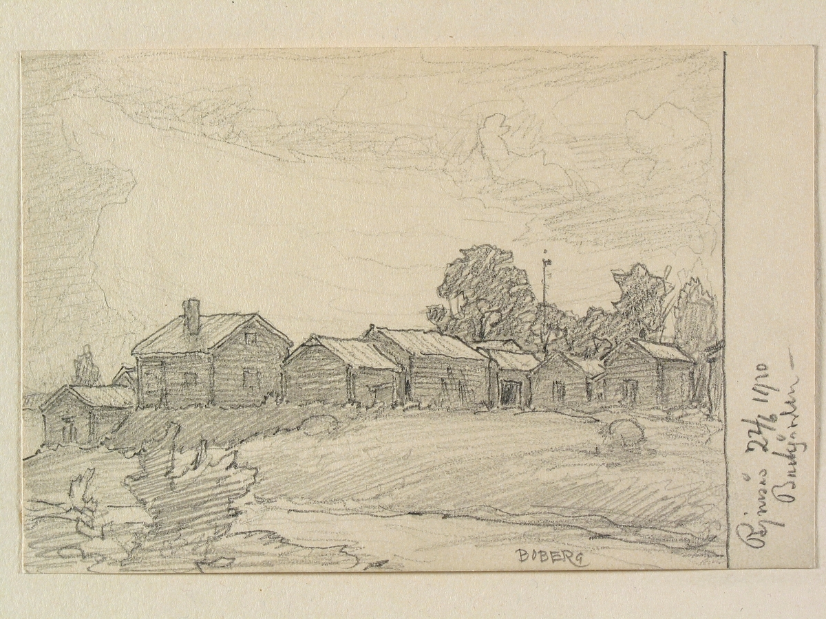 Dalarna, Bjursås sn., Backgården. Teckning av Ferdinand Boberg