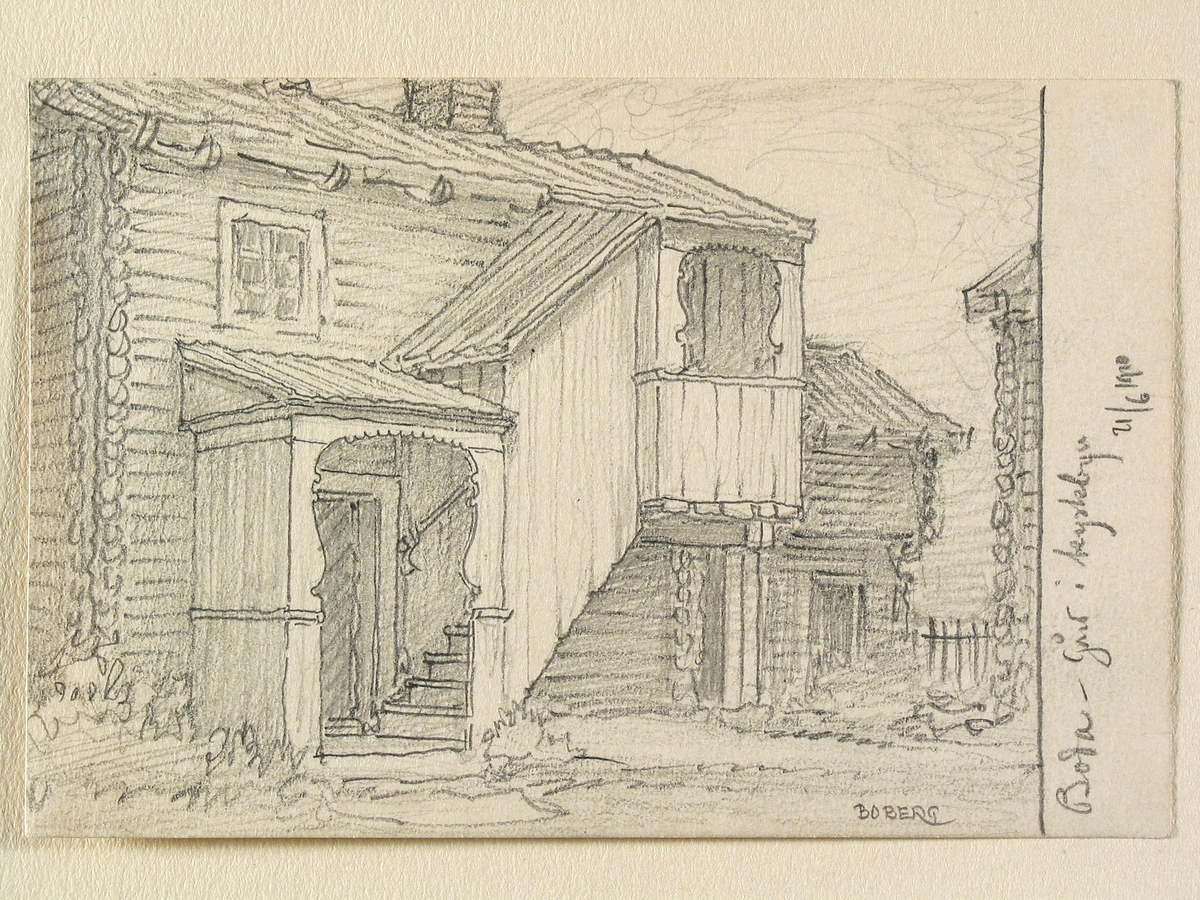 Dalarna, Boda sn., Boda. Gård i kyrkbyn. Teckning av Ferdinand Boberg