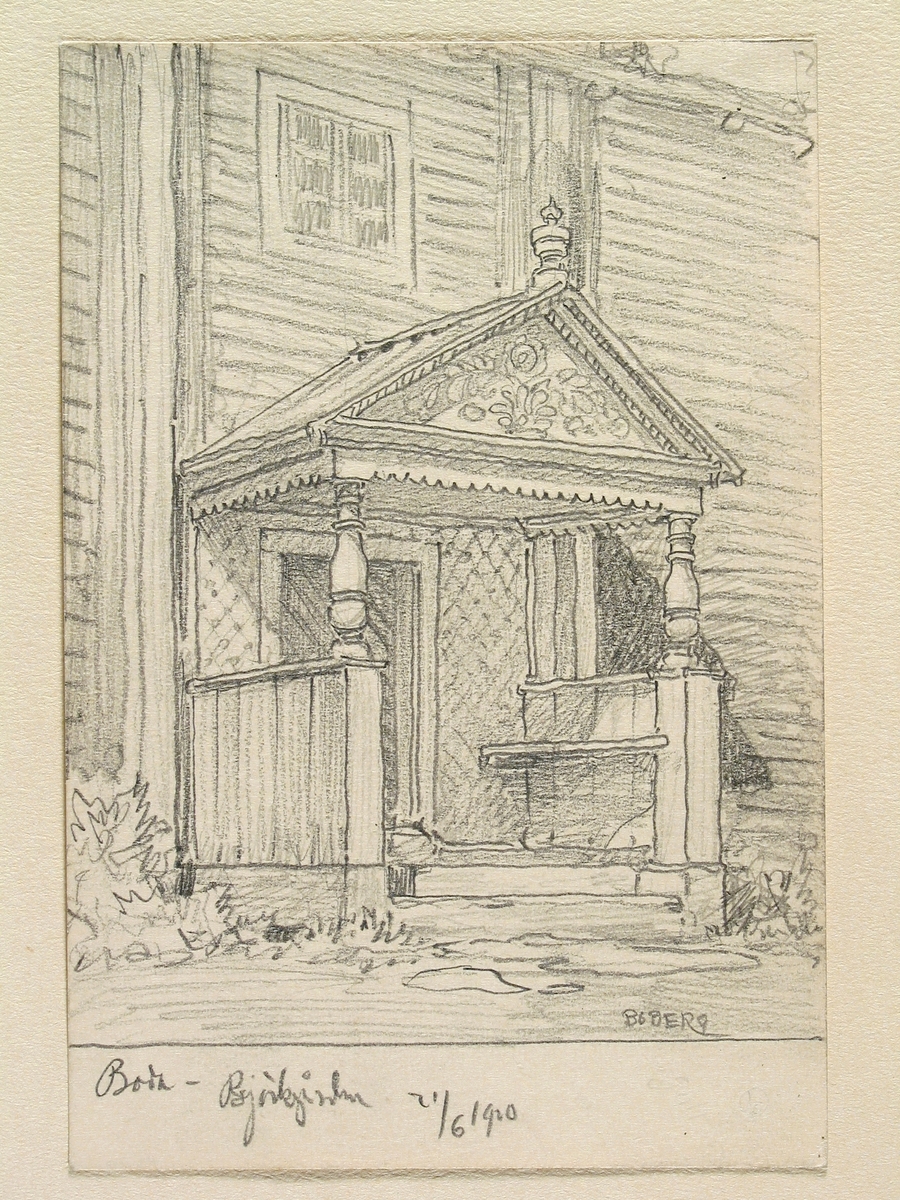 Dalarna, Boda sn., Boda, Björkgården. Teckning av Ferdinand Boberg
