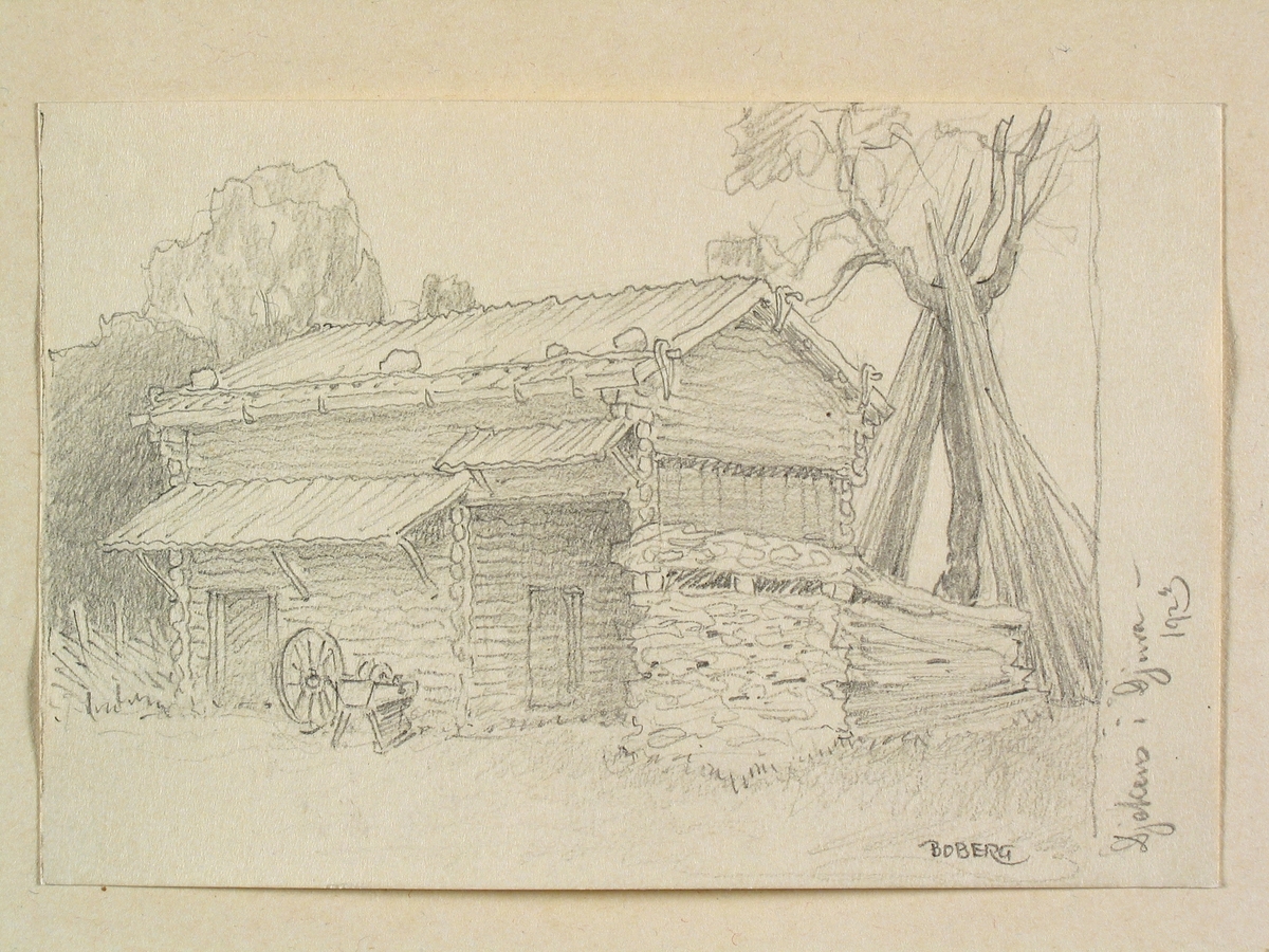 Dalarna, Leksands sn., Djura kapellförsamling, Djekens. Teckning av Ferdinand Boberg.