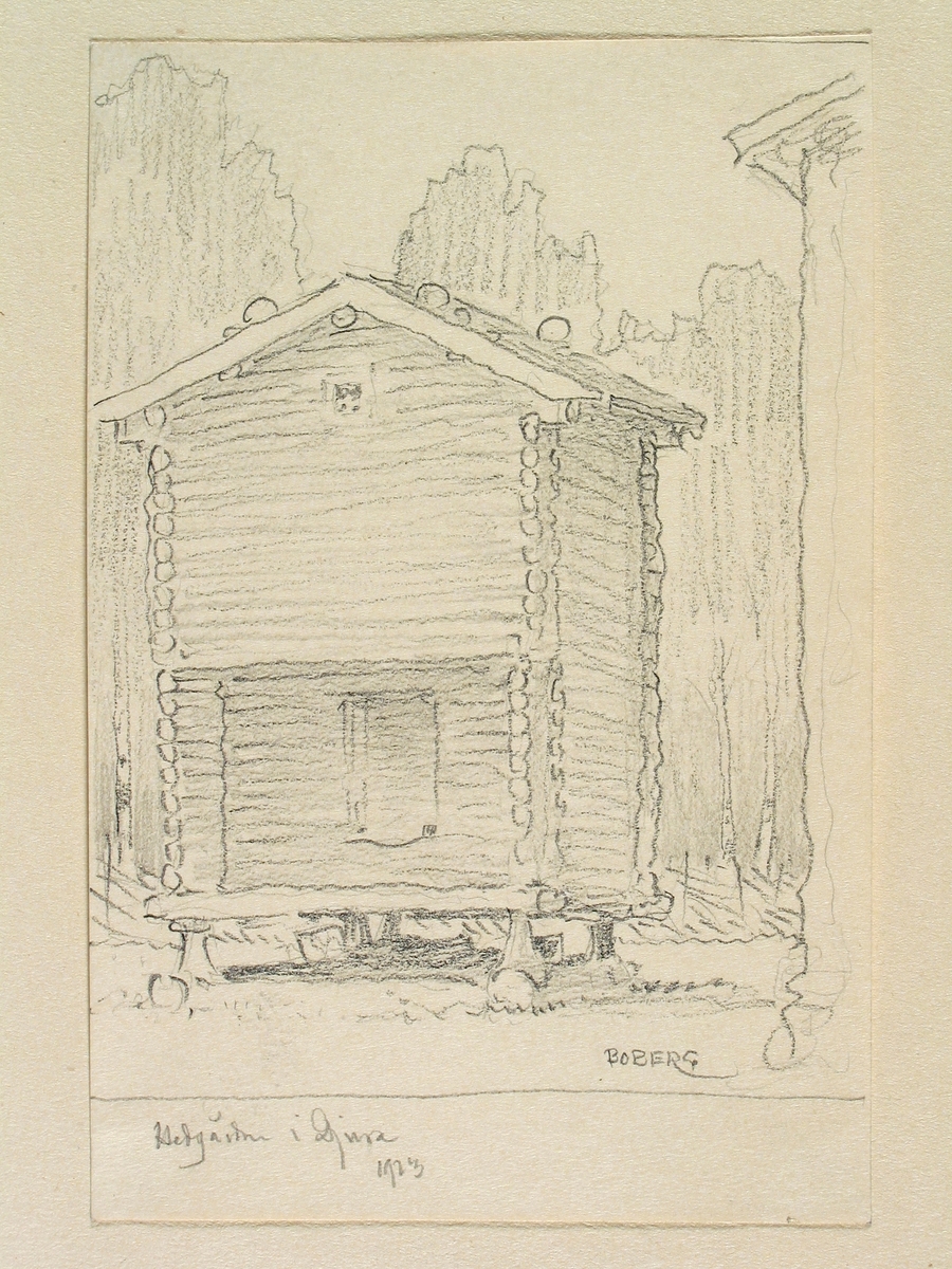 Dalarna, Leksands sn., Djura kapellförsamling, Hedgården. Teckning av Ferdinand Boberg.
