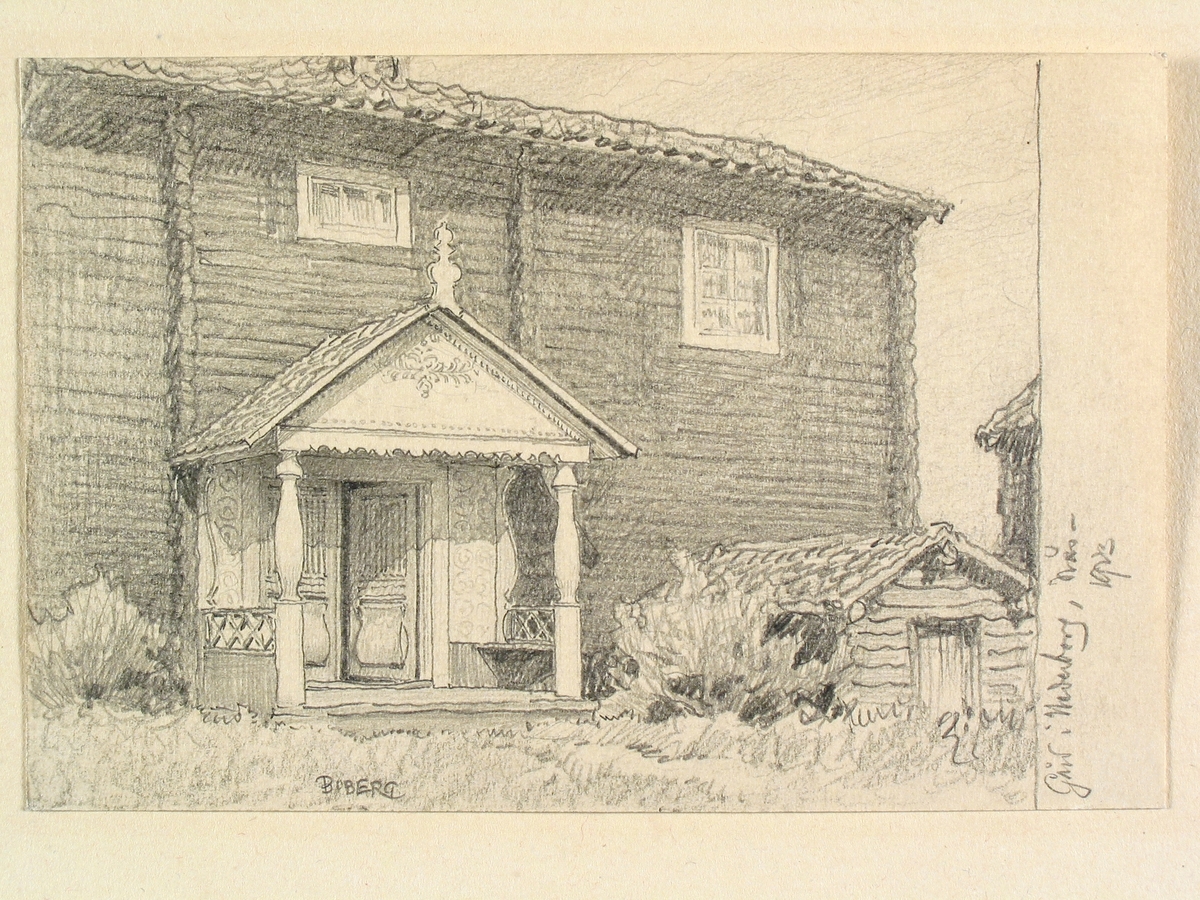 Dalarna, Nås sn. Gård i Nederborg. Teckning av Ferdinand Boberg