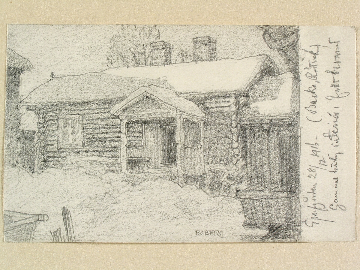 Dalarna, Rättviks sn., Backa, Sparvgården. Teckning av Ferdinand Boberg