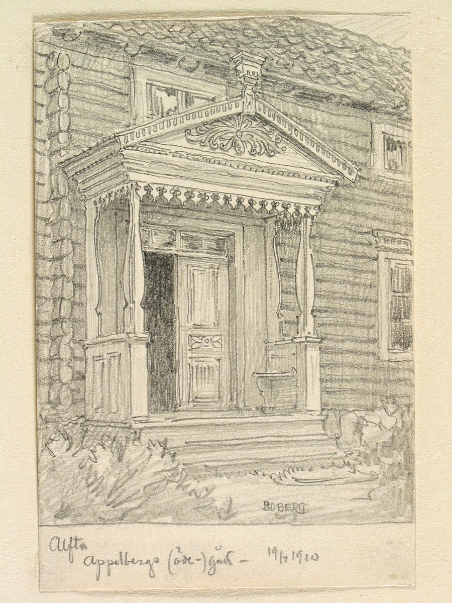 Hälsingland, Alfta sn. "Appelbergs (öde-)gård". Teckning av Ferdinand Boberg