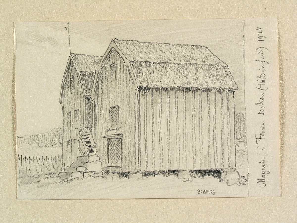 Hälsingland, Forsa sn. "Magasin i Forsa socken". Teckning av Ferdinand Boberg