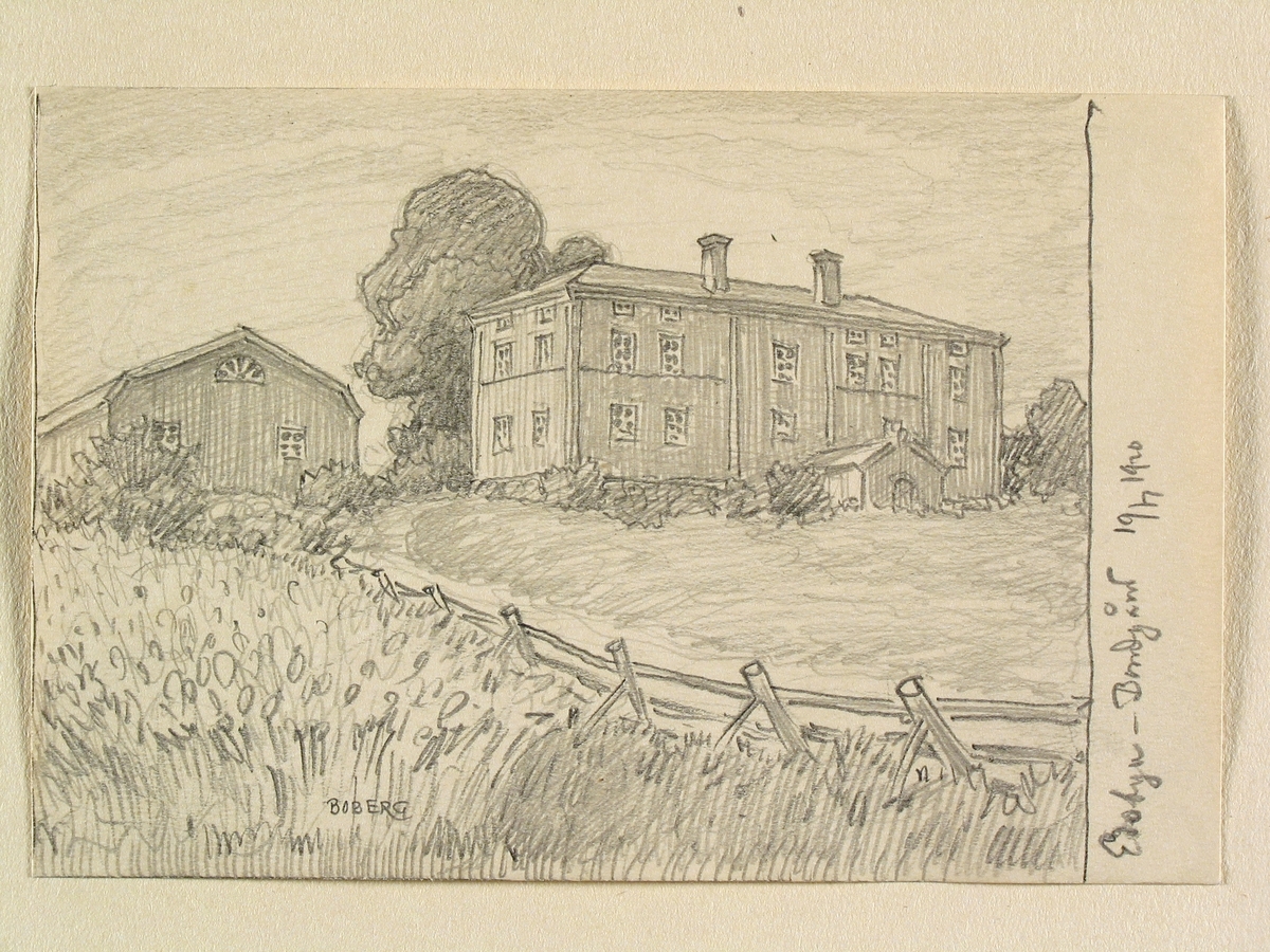 Hälsingland, Ovanåkers sn. "Edsbyn bondgård". Teckning av Ferdinand Boberg