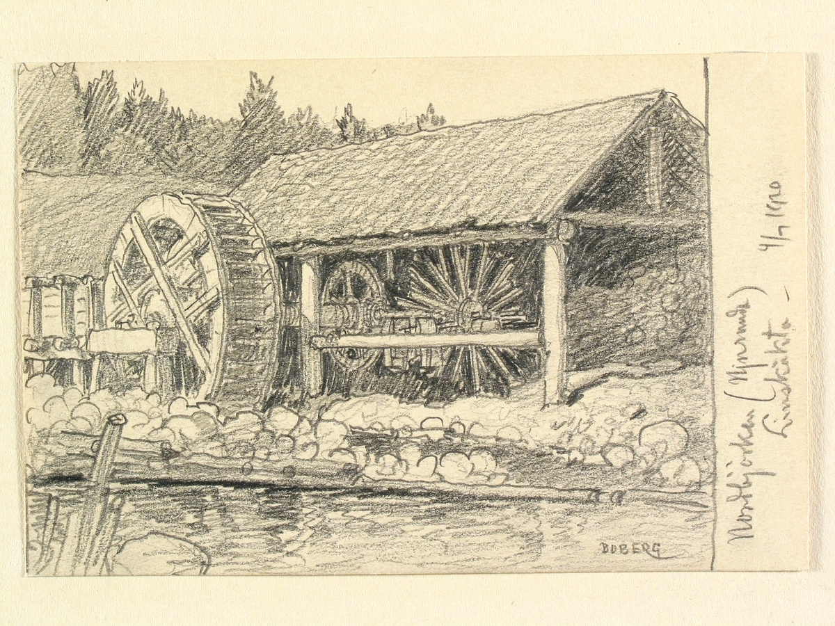Medelpad, Njurunda sn., Nordbjörken. Linskäkta. Teckning av Ferdinand Boberg