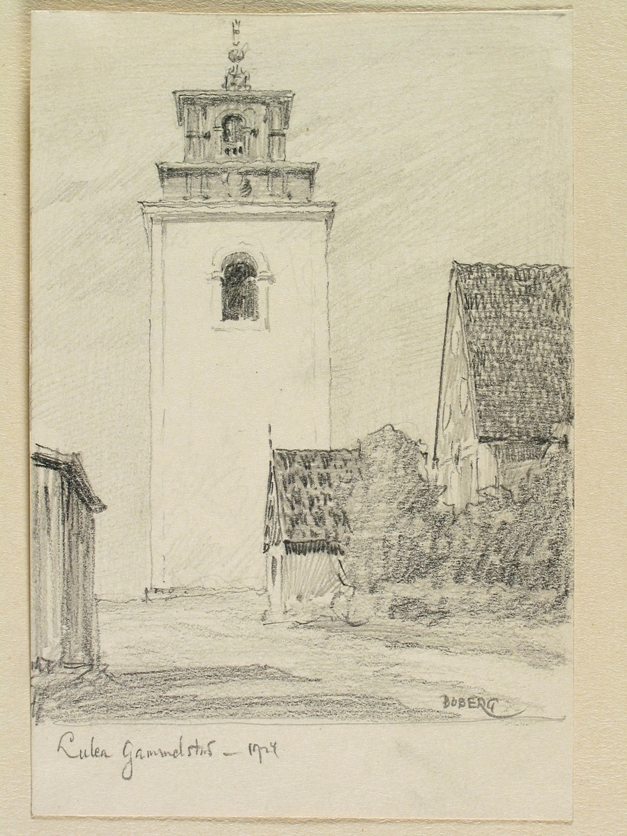 Norrbotten, Nederluleå sn., Luleå gammelstads kyrka. Teckning av Ferdinand Boberg
