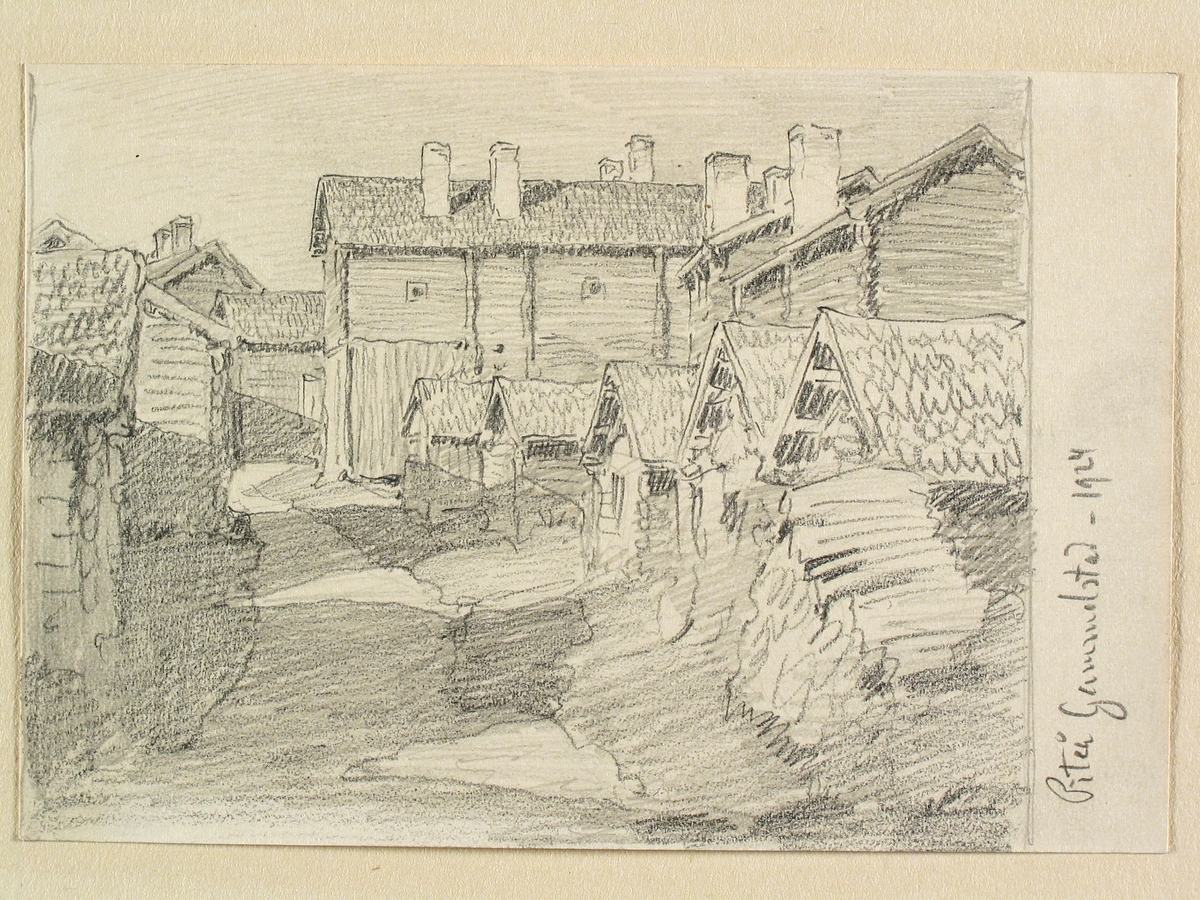Norrbotten, Piteå landsförsamling, Piteå gammelstad. Teckning av Ferdinand Boberg.