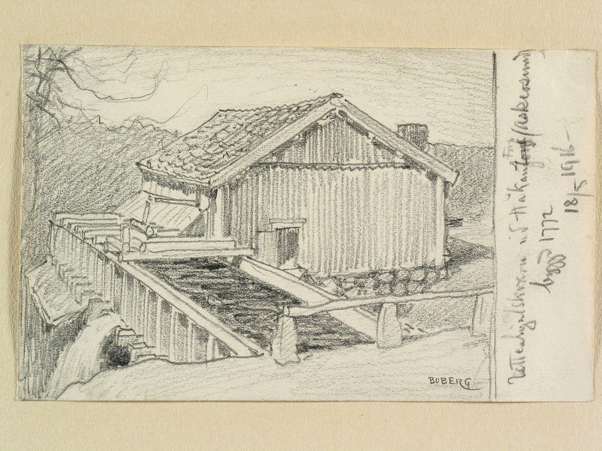 Närke, Sundbo hd., Askersunds landsförsamling. Vattenhjulkvarn vid Håkantorp byggd 1772. Teckning av Ferdinand Boberg.