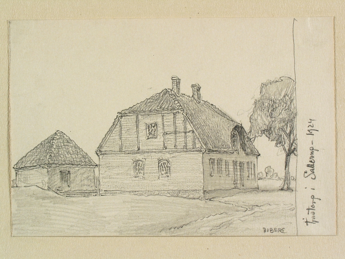 Skåne, Oxie hd., Sallerups sn., Tjustorp. Teckning av Ferdinand Boberg