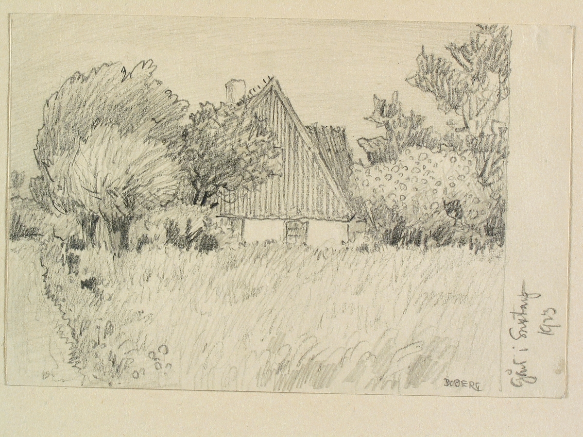 Skåne, Harjagers och Rönnebergs härader. Gård i Saxtorps. Teckning av Ferdinand Boberg