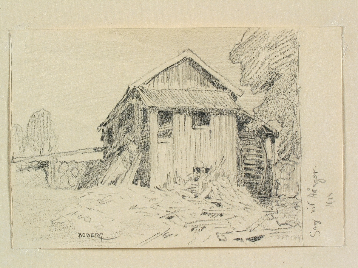 Småland, Östbo hd., Hångers sn. "Såg vid Hånger". Teckning av Ferdinand Boberg.