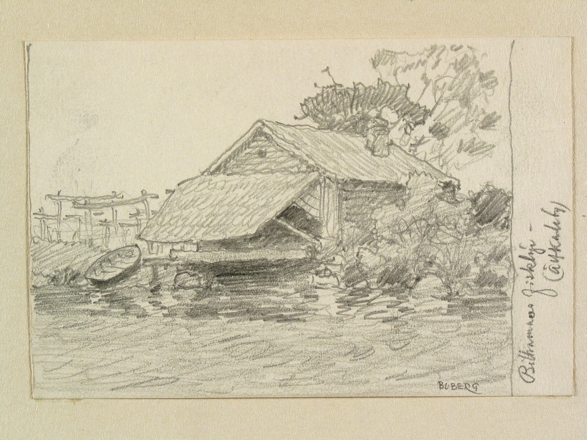 Uppland, Örbyhus hd., Älvkarleby sn., Billhamns fiskeläge. Teckning av Ferdinand Boberg