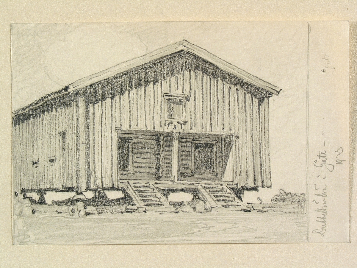 Värmland, Jösse hd., Arvika sn. "Dubbelhärbre i Gate". Teckning av Ferdinand Boberg