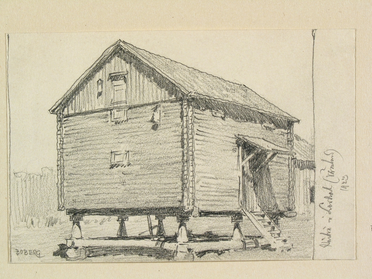 Värmland, Jösse hd., Brunskogs sn. Härbre i Lerhol. Teckning av Ferdinand Boberg