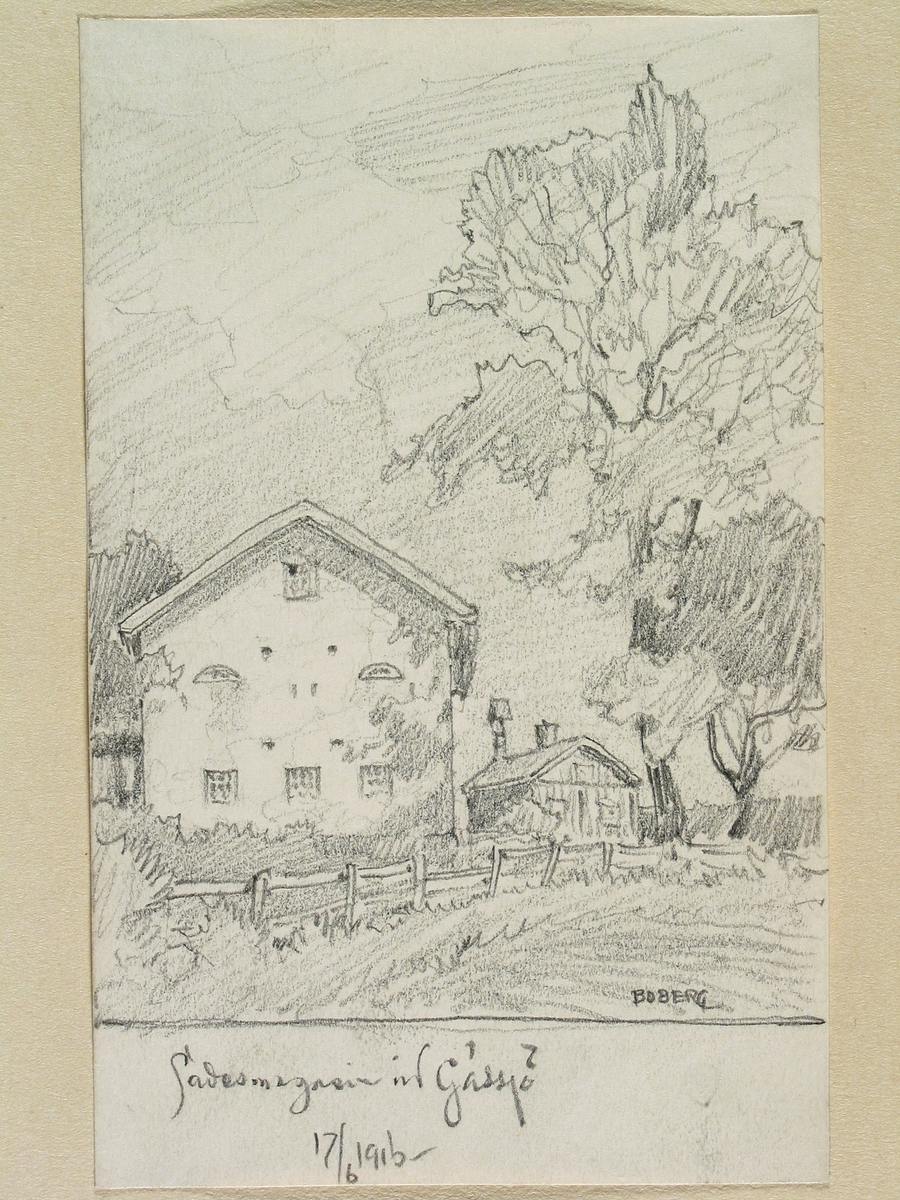 Ångermanland, Edsele sn. Sädesmagasin vid Gässjö. Teckning av Ferdinand Boberg.