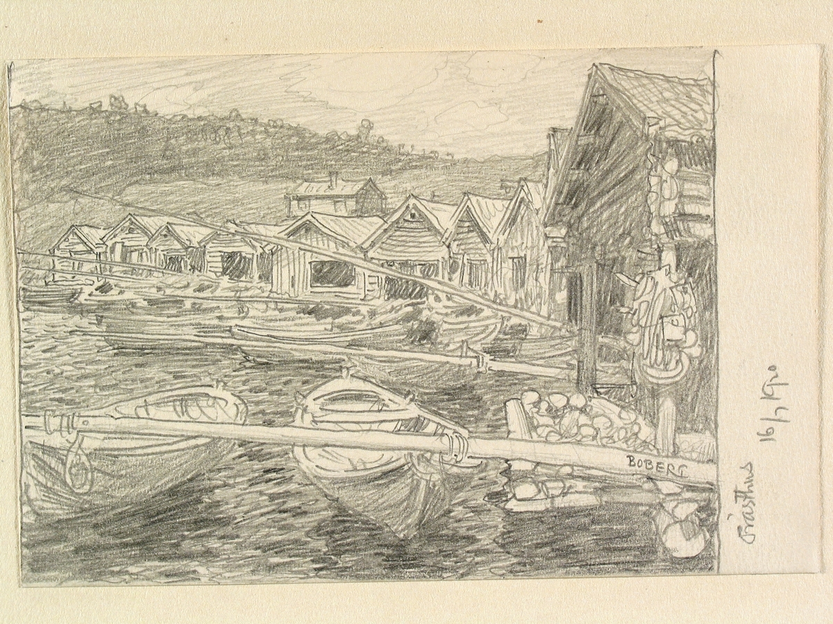 Ångermanland, Högsjö sn., Hemsö kapellförsamling. Prästhus fiskeläge. Teckning av Ferdinand Boberg.