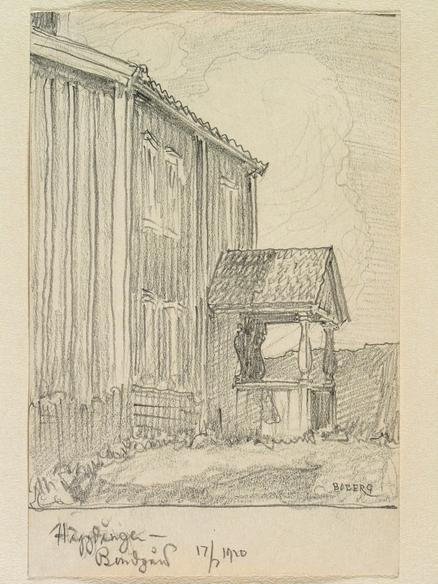 Ångermanland, Häggdånger. Bondgård. Teckning av Ferdinand Boberg.