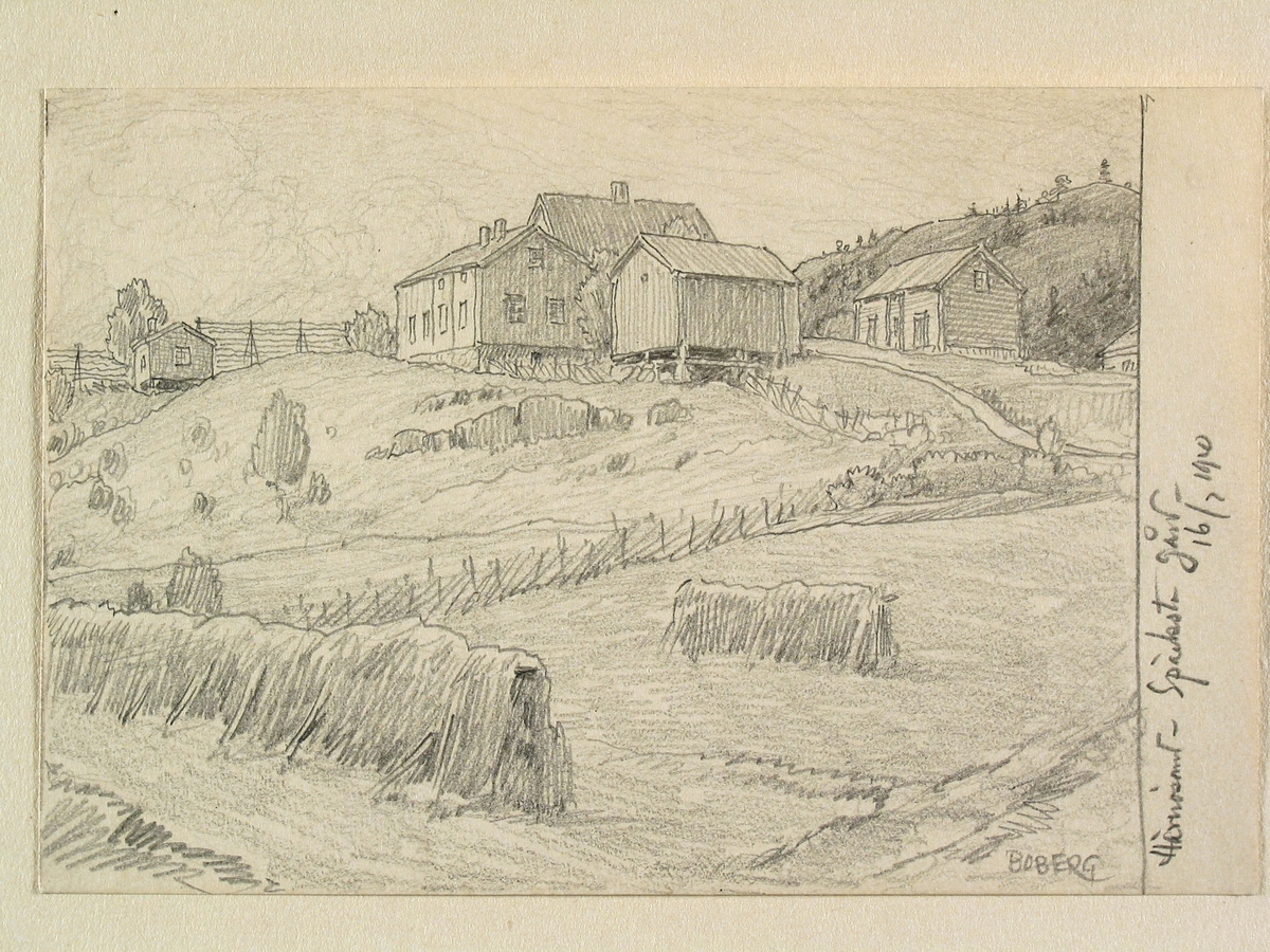 Ångermanland, Härnö sn., Späcksta gård. Teckning av Ferdinand Boberg.