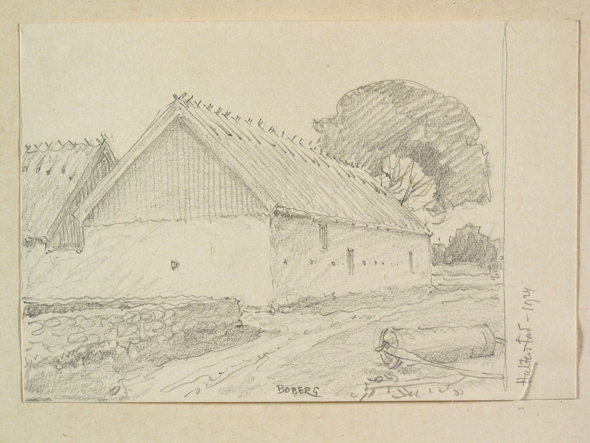 Öland, Möckleby hd, Hulterstad. Gårdbebyggelse. Teckning av Ferdinand Boberg.