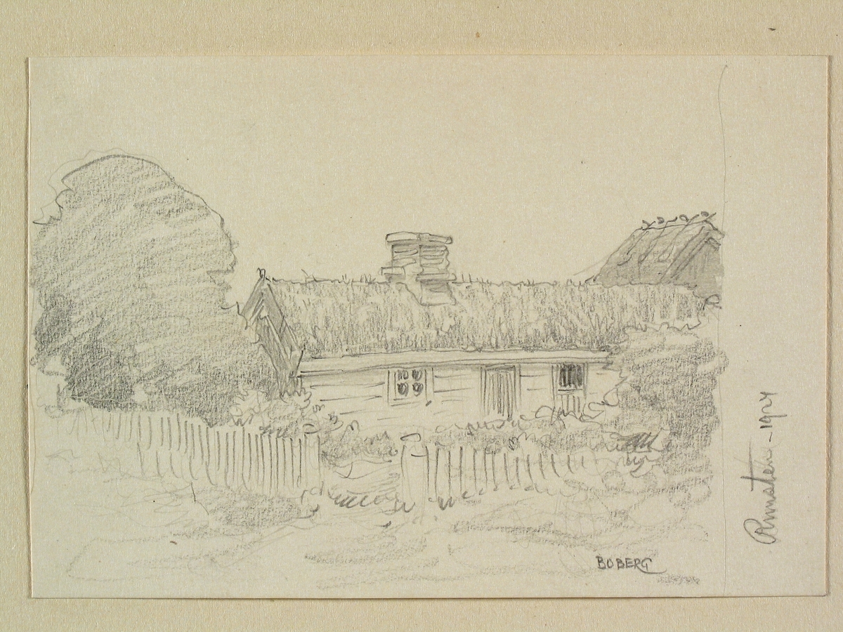Öland, Runsten. Stuga. Teckning av Ferdinand Boberg.