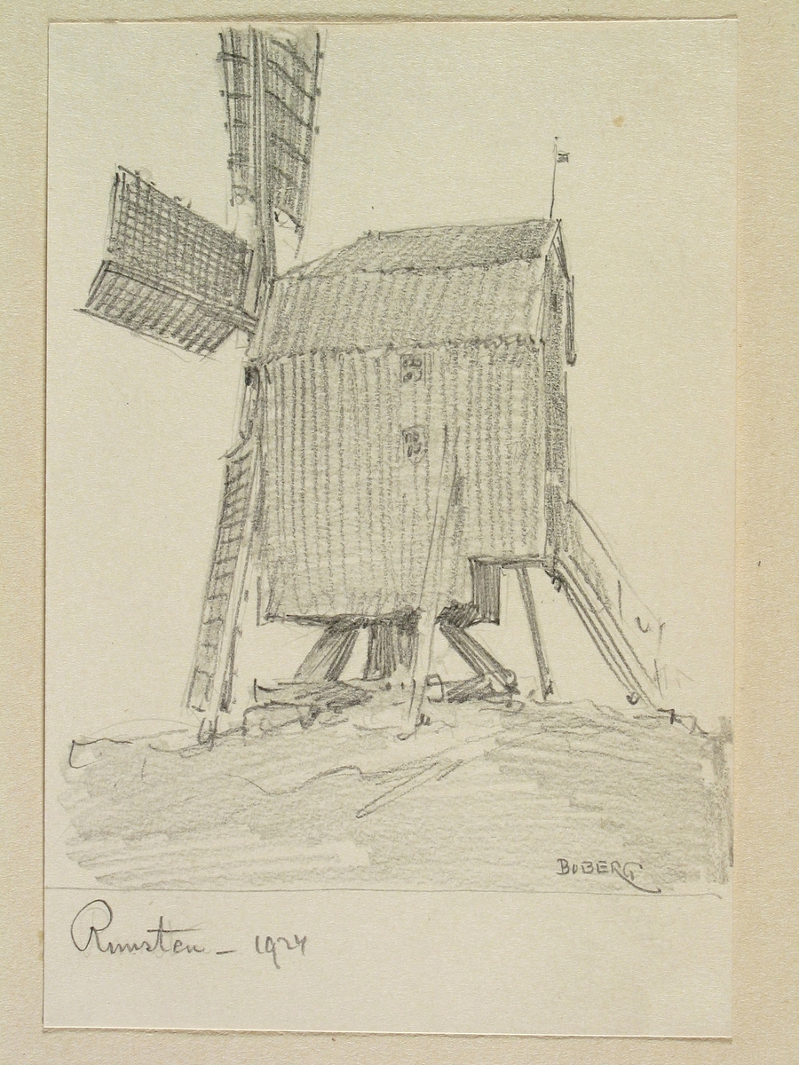 Öland, Runsten. Väderkvarn. Teckning av Ferdinand Boberg.