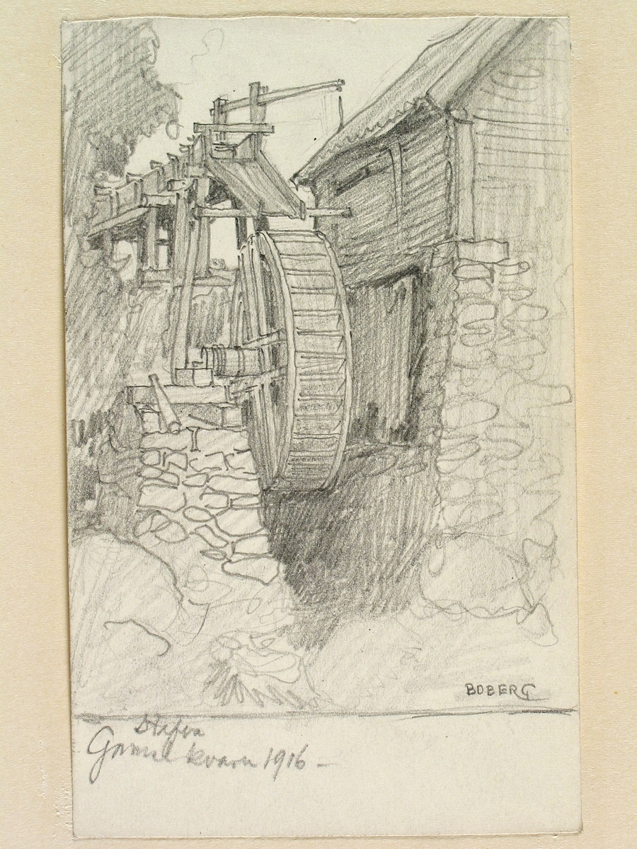 Teckning av Ferdinand Boberg. Östergötland, Lysinge hd. , Ödeshögs sn., Stafva