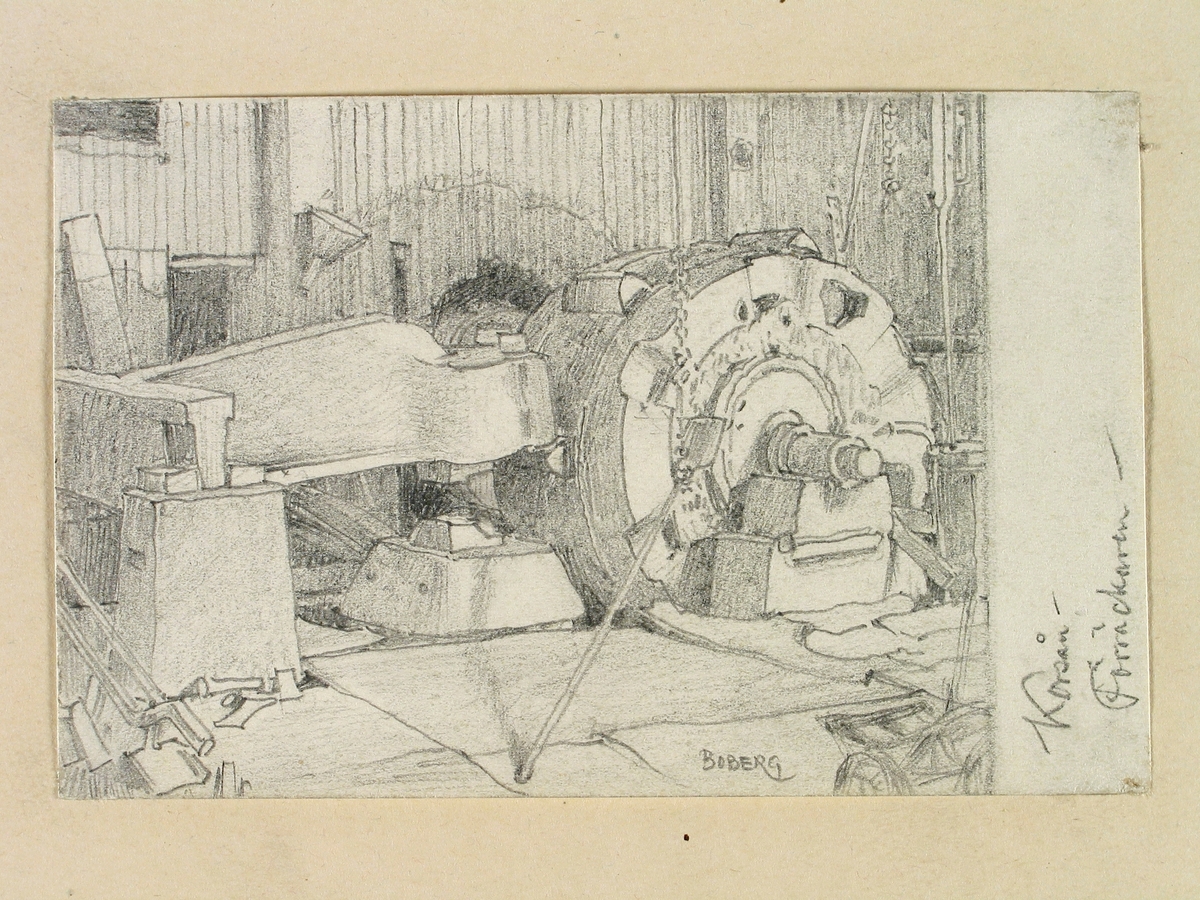 Dalarna, Sundborns sn., Korså. Förräckare (smälthammare). Teckning av Ferdinand Boberg